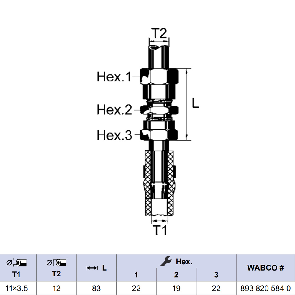 Фитинг компрессионный штуцер 11мм трубка 12мм прямой разборный компрессионный WABCO