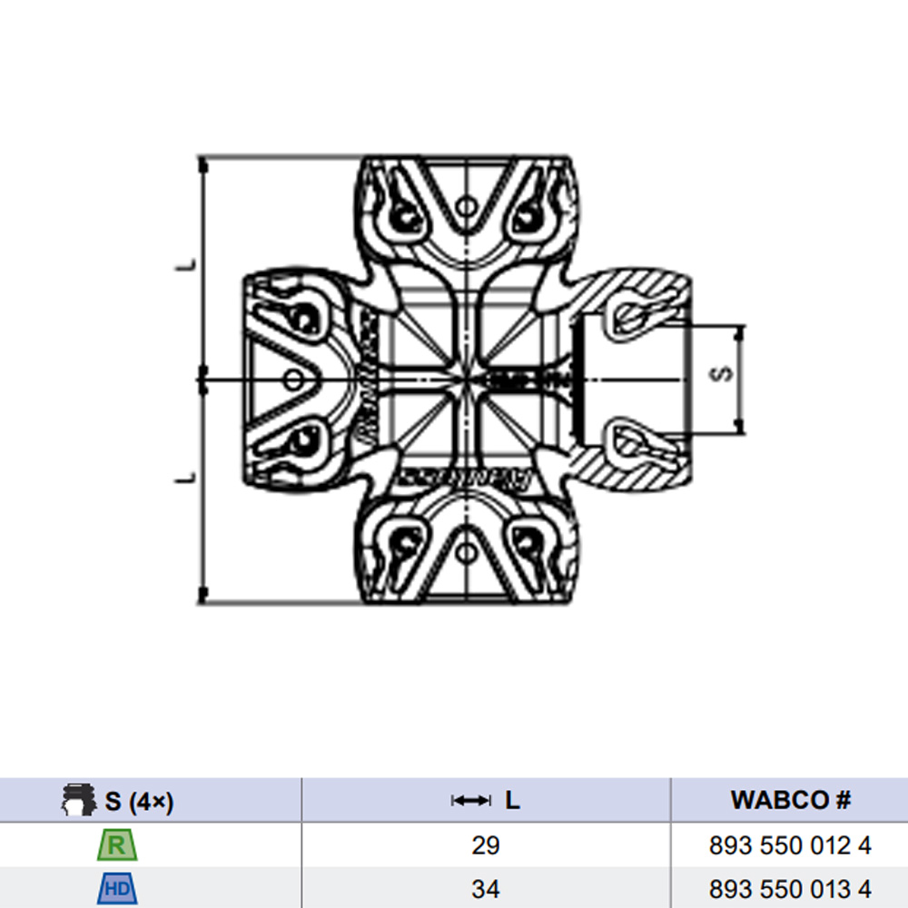 Фитинг крестовина X-образный heavy duty шарнирный быстросъемный пневматический ABС WABCO