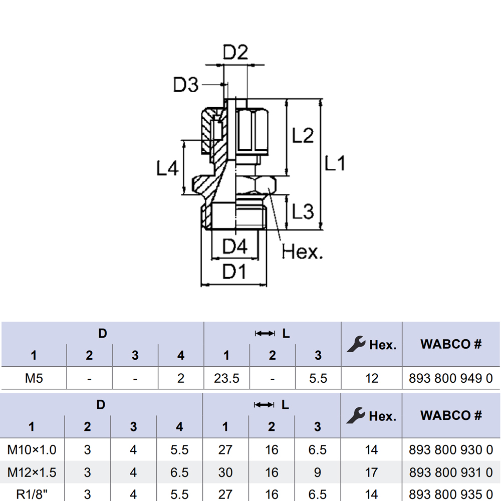 Фитинг R1/8" трубка 6х1мм прямой разборный компрессионный WABCO