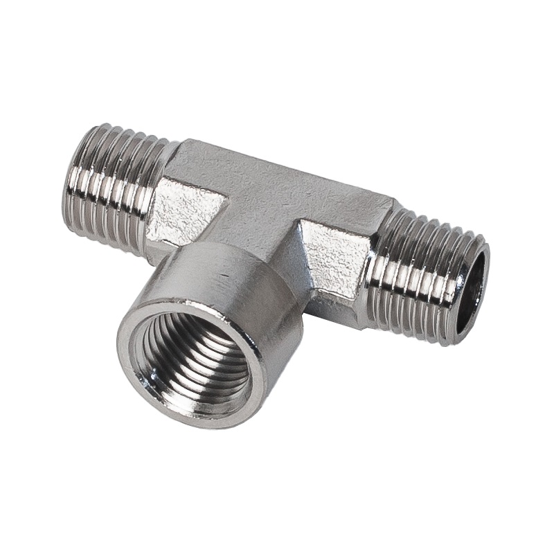 Фитинг Т-образный JWNN R1/8 резьбовой никелированная латунь NBPT