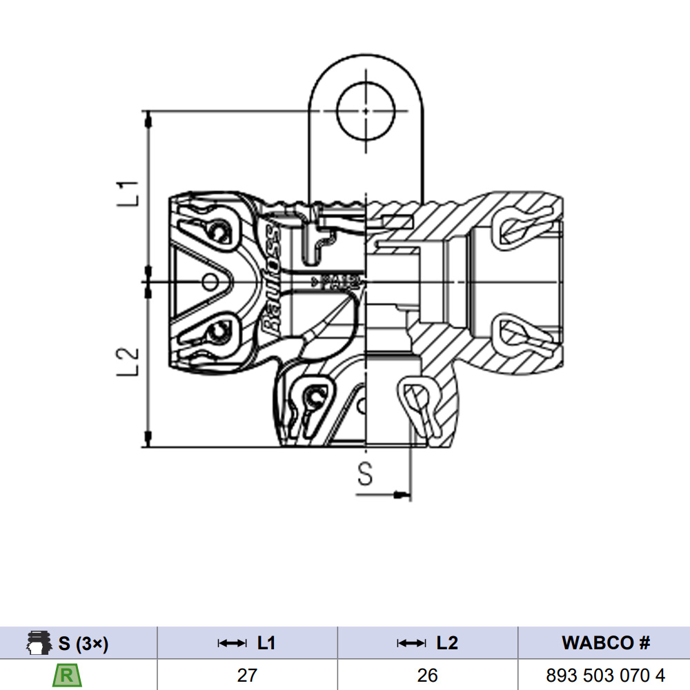 Фитинг Т-образный шарнирный подвесной regular быстросъемный пневматический ABС WABCO