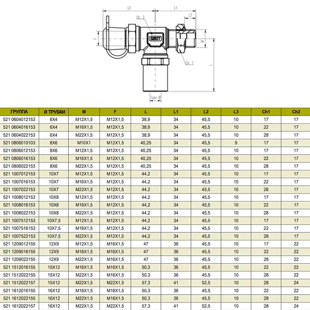 Фитинг тройник М22x1,5 трубка 15x12мм вертикальный клапаном латунный цанговый SIRIT