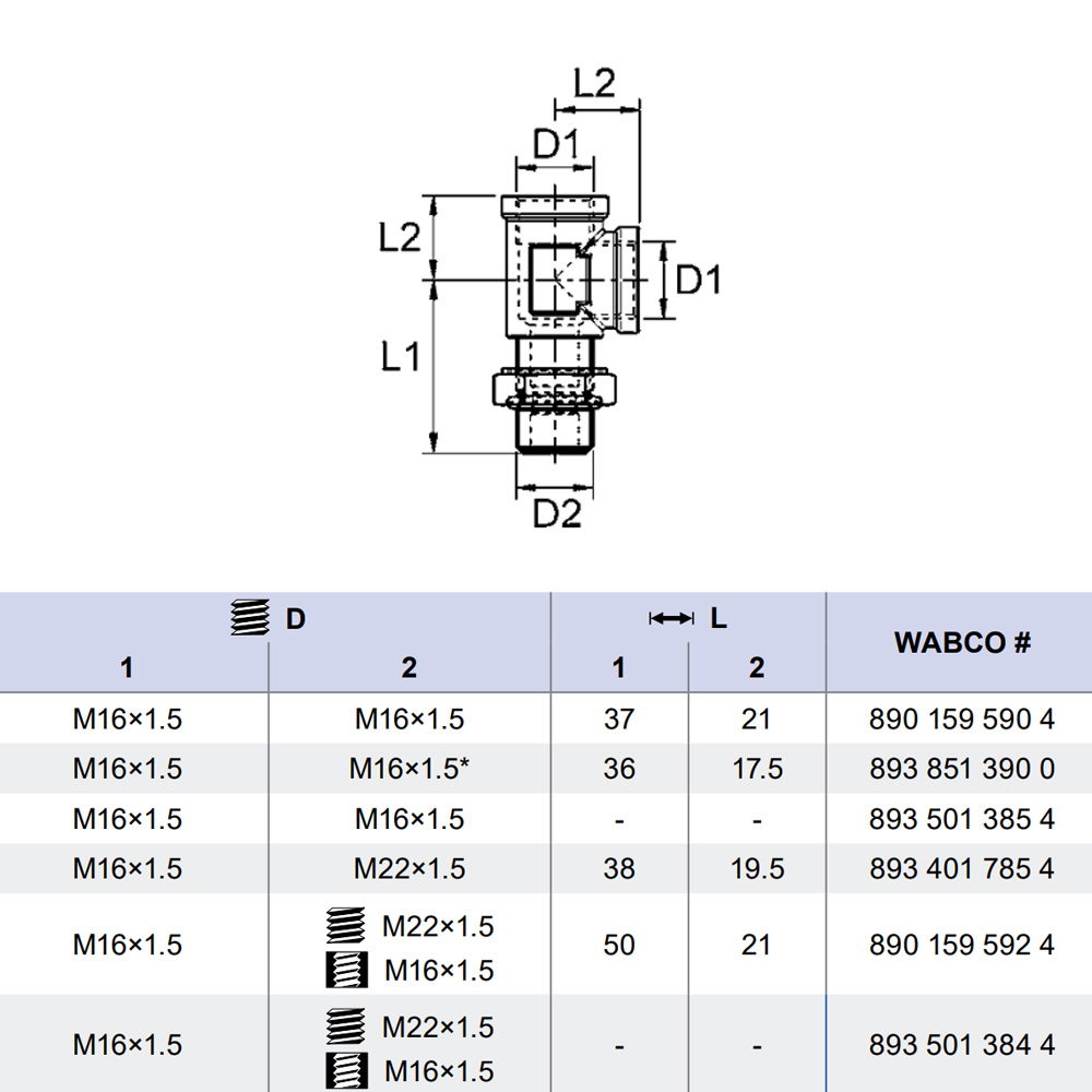 Фитинг тройник наружная М16х1,5 внутренняя М16х1,5 вертикальный латунь, WABCO