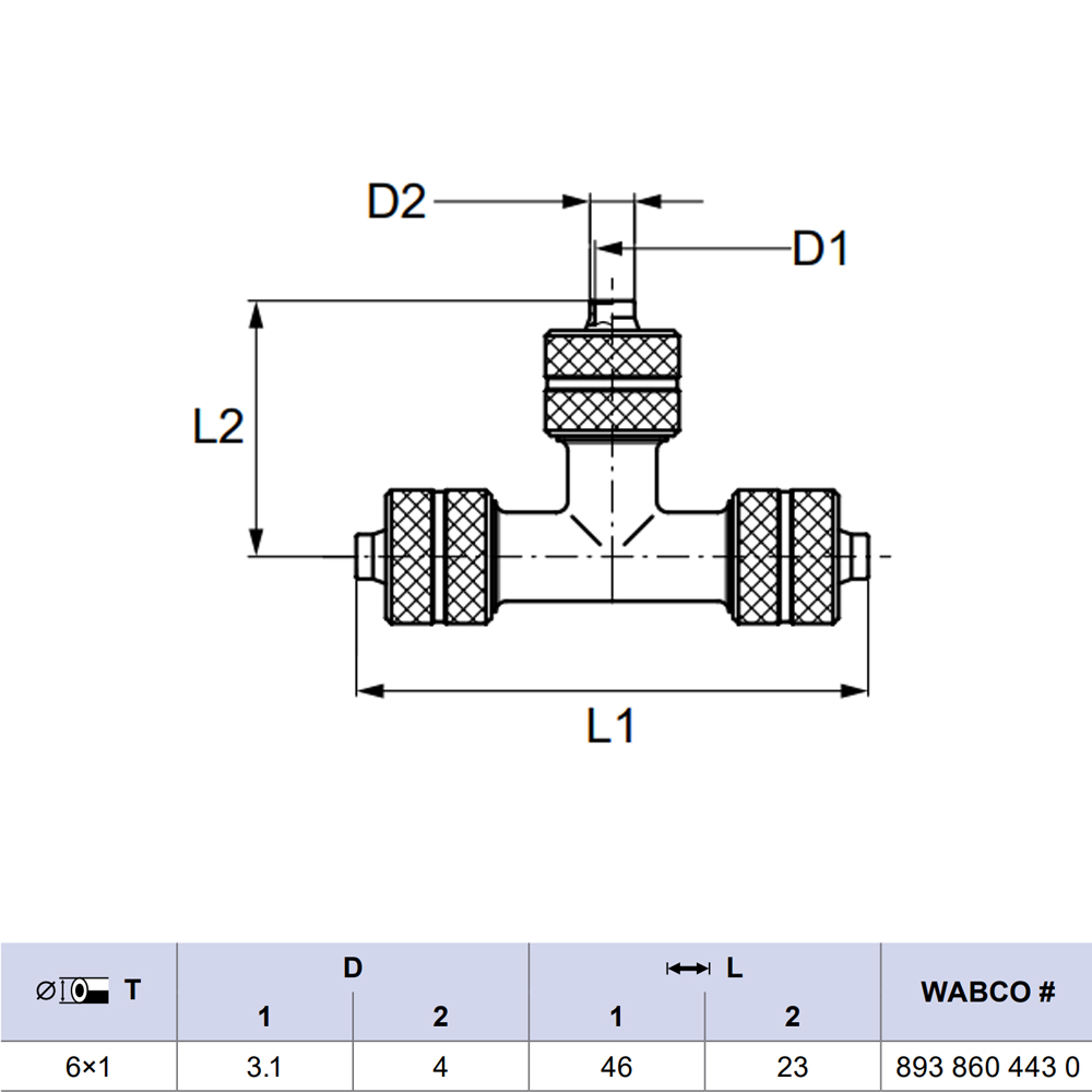 Фитинг тройник обжимной трубка 6мм разборный компрессионный, WABCO