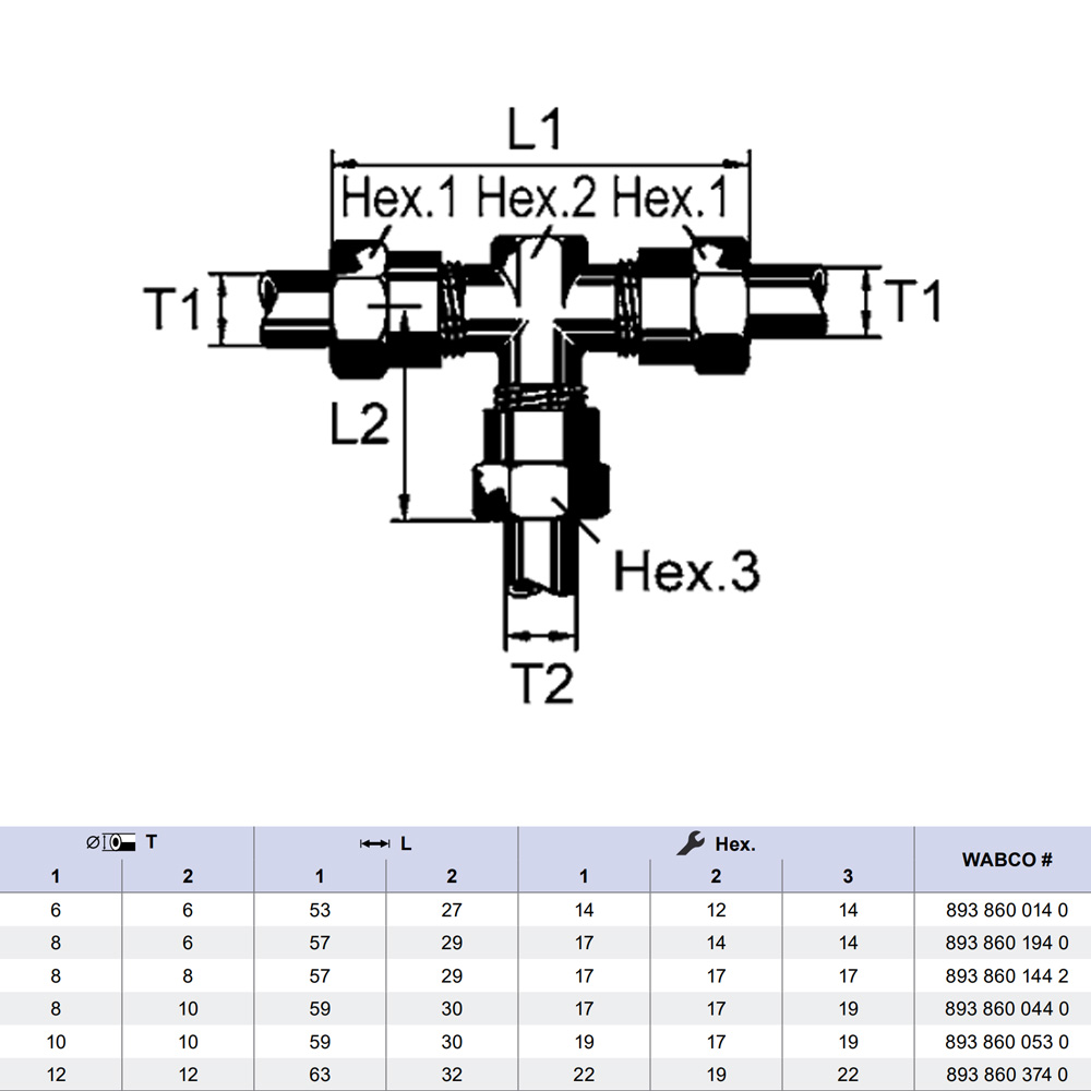 Фитинг тройник обжимной трубка 8-6мм разборный компрессионный WABCO