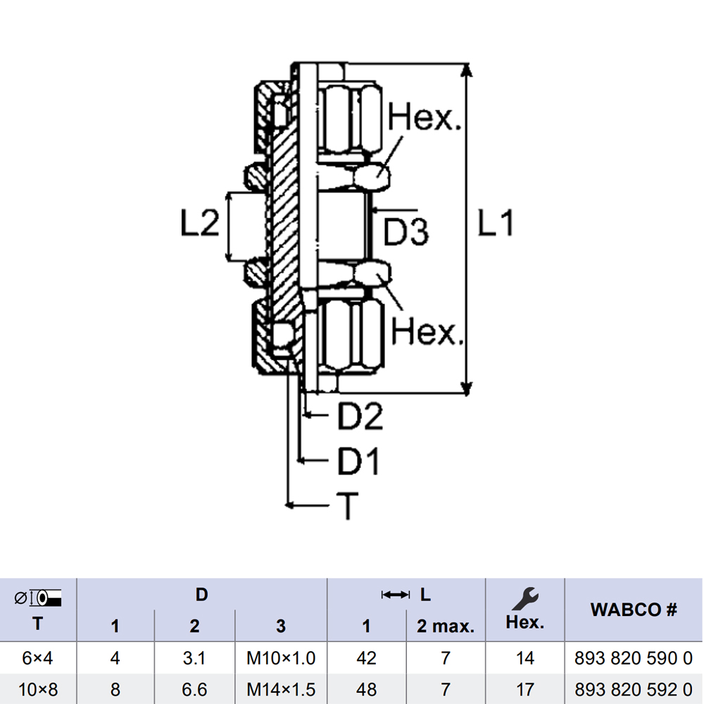 Фитинг трубка 10х8мм прямой разборный компрессионный WABCO
