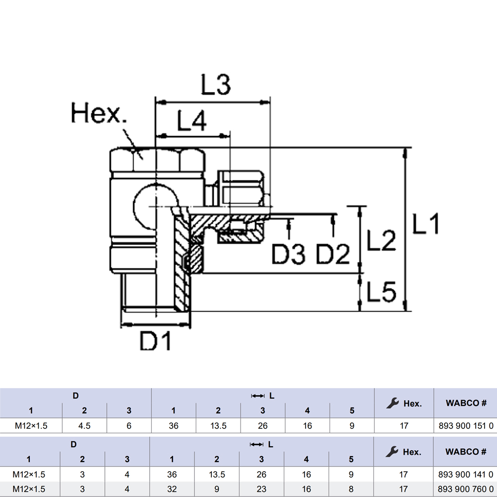 Фитинг угловой М12x1,5 трубка 6мм, разборный компрессионный WABCO