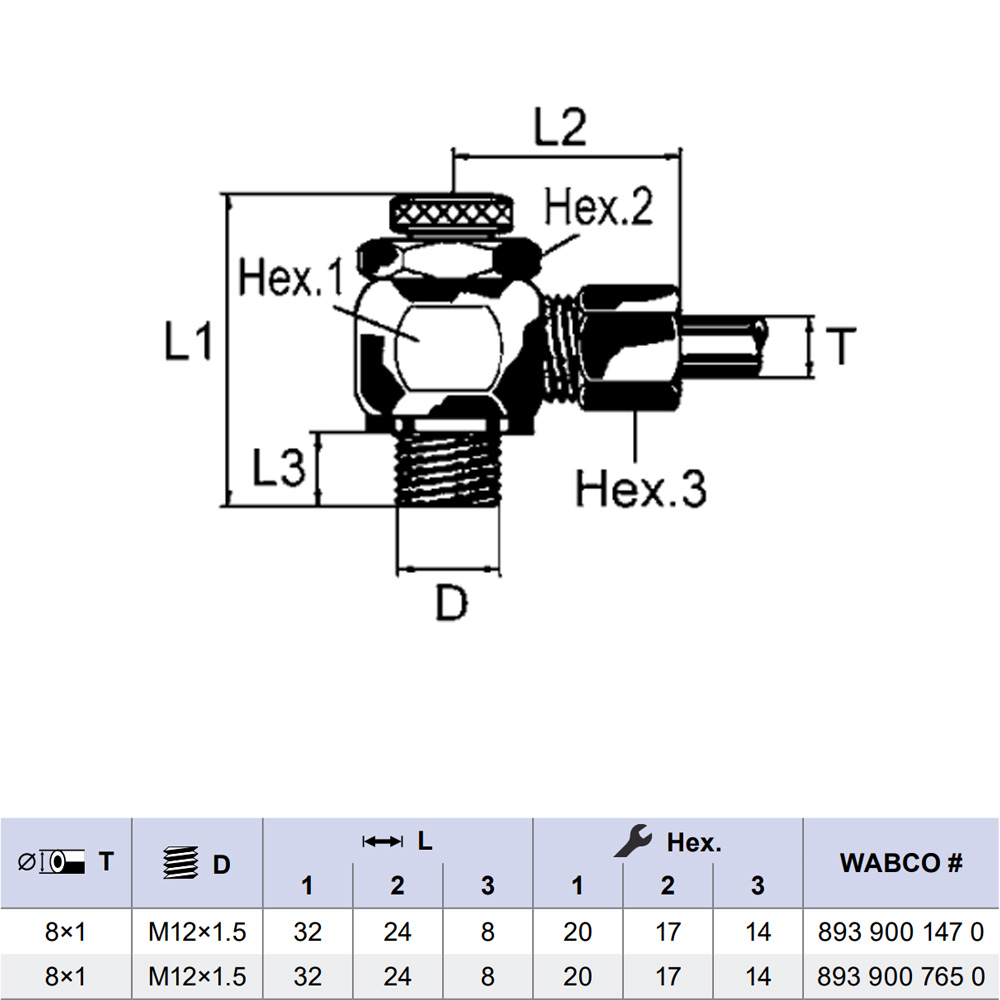 Фитинг угловой М12x1,5 трубка 8х1мм разборный компрессионный WABCO