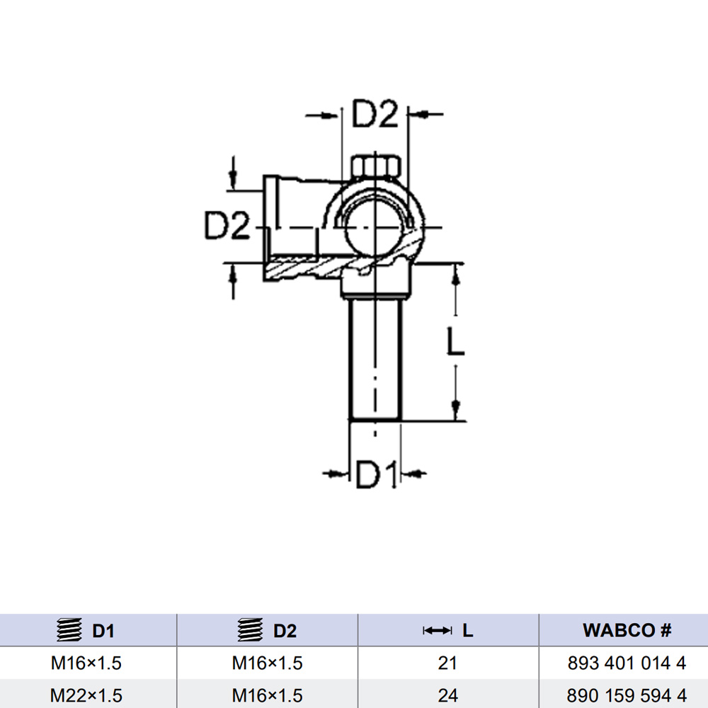Фитинг угловой наружная М16х1,5 внутренняя М16х1,5 латун. WABCO