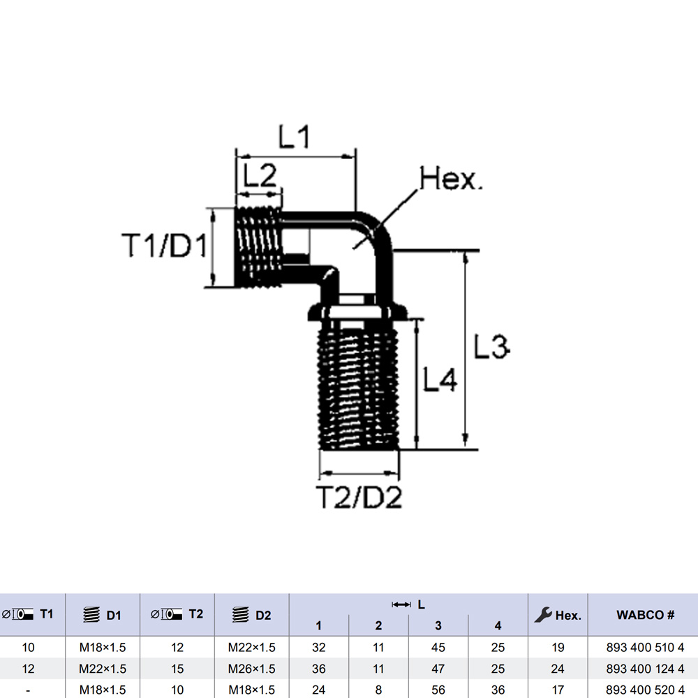 Фитинг угловой обжимной трубка 10мм наружная М18х1,5 - М18х1,5 WABCO