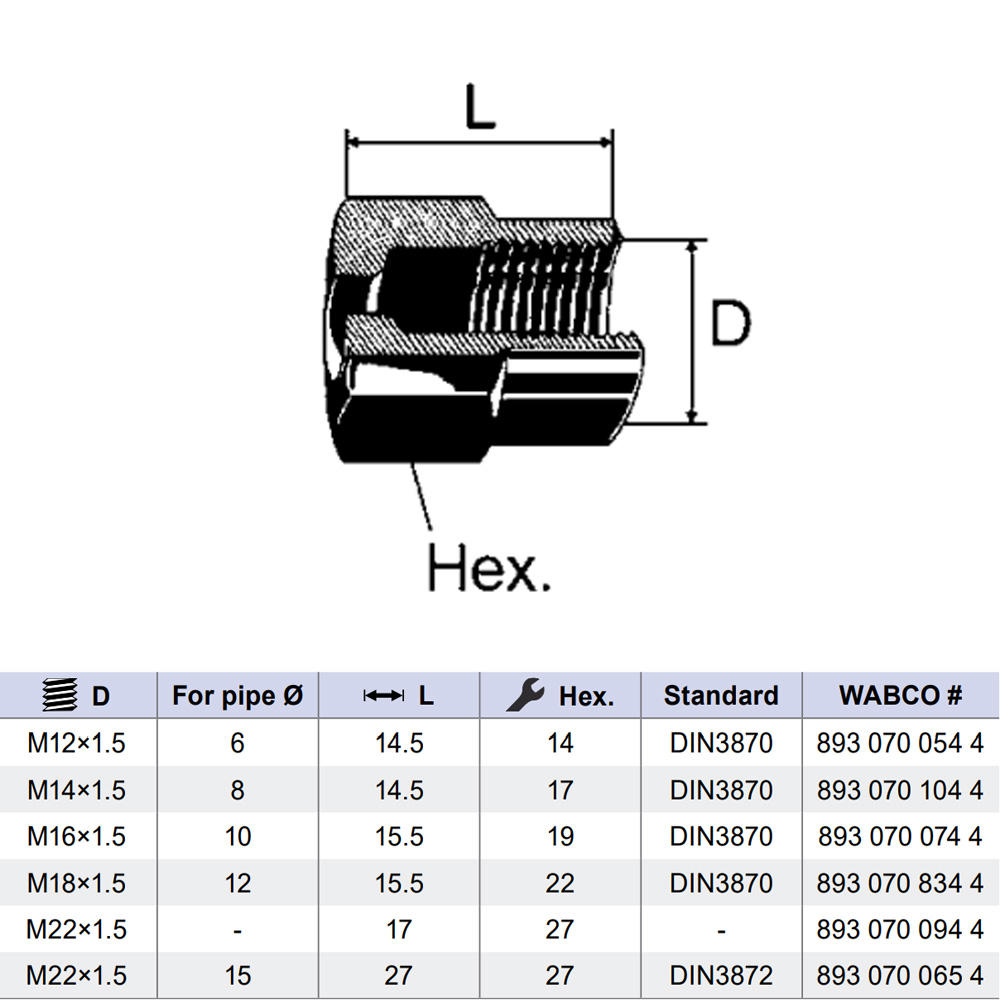 Гайка накидная M22x1,5 трубка 15мм DIN3872 WABCO