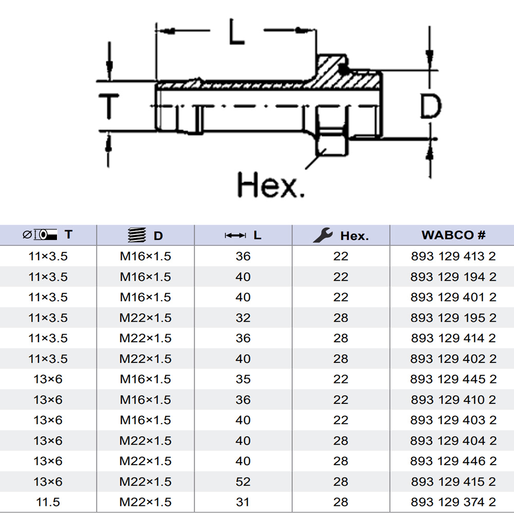 Штуцер под шланг M22x1,5 елочка 13мм длина 52мм WABCO